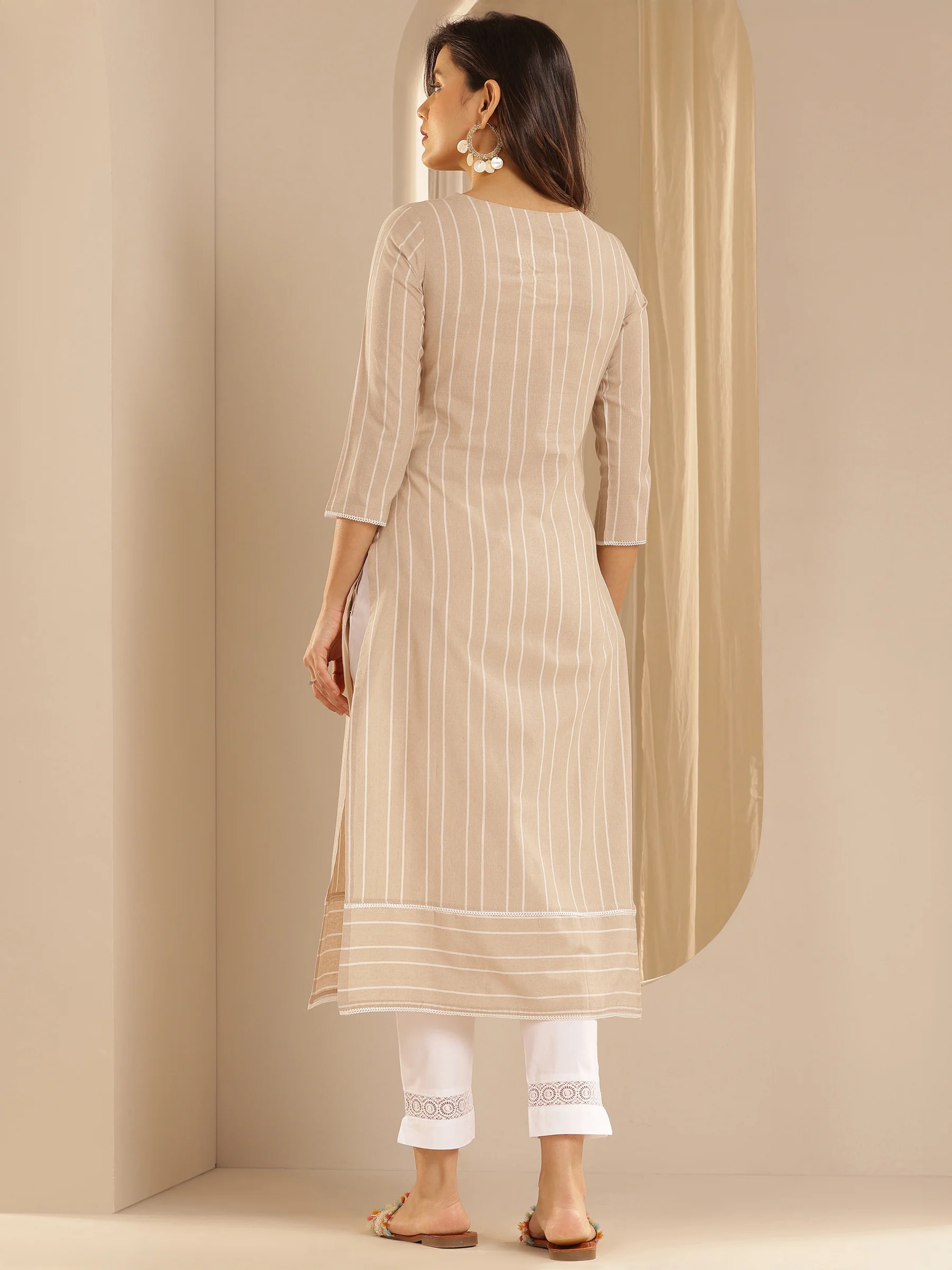 Home Kurta Set Beige Embroidered Cotton Blend Straight Kurta