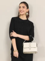 Home Kurta Set Black Solid Cotton Straight Kurta