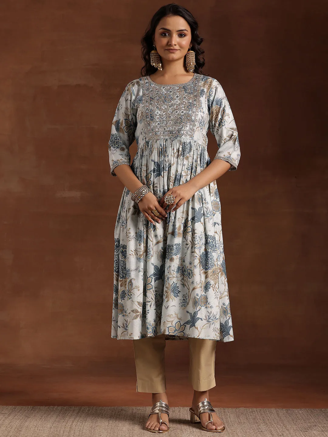 Beige Printed Silk Blend Straight Kurtis ₹800.00