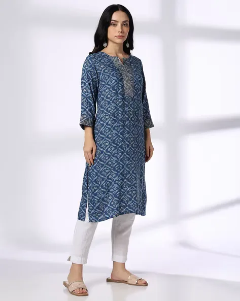 Women Embroidered Straight Kurta