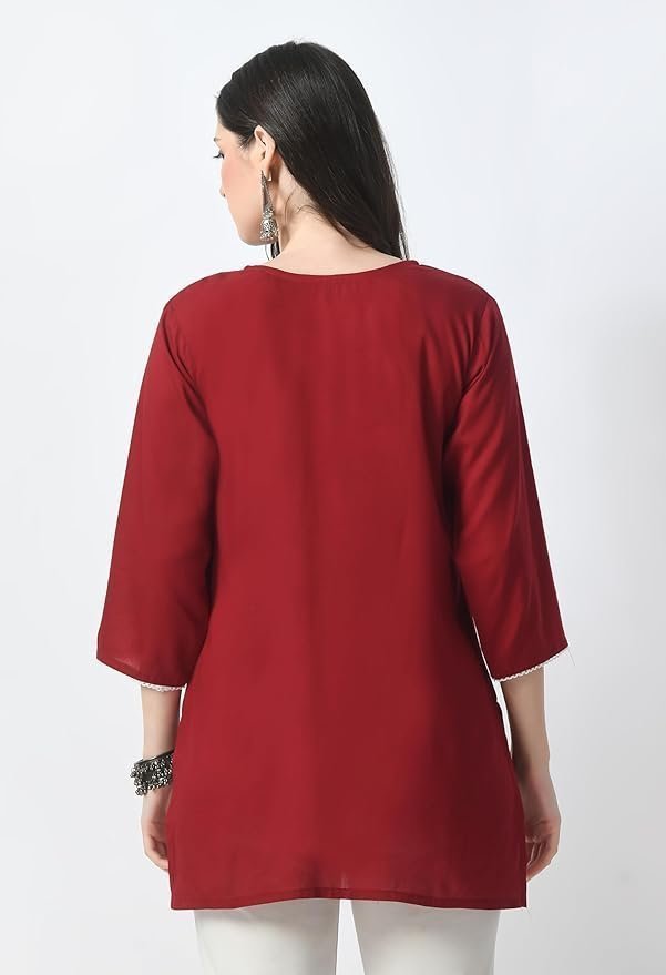 Short Kurti for Women | Indian Women’s Tunics Tops | Rayon Top with 3/4 Designer Sleeves | Kurta Shirt Top for Ladies