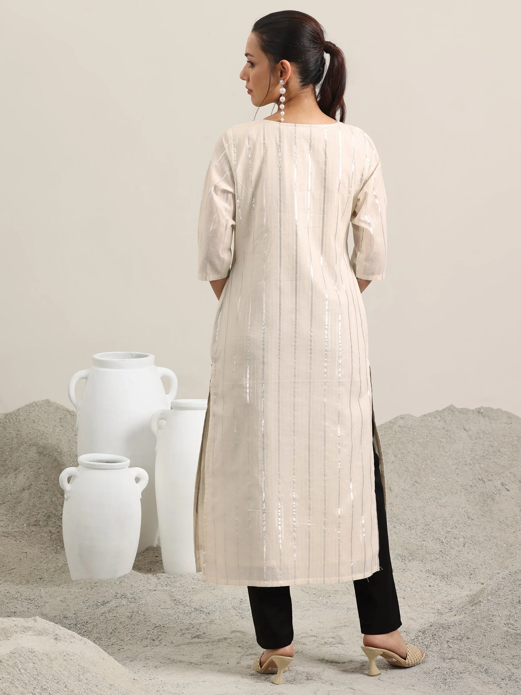 Off White Embellished Cotton Straight Kurta