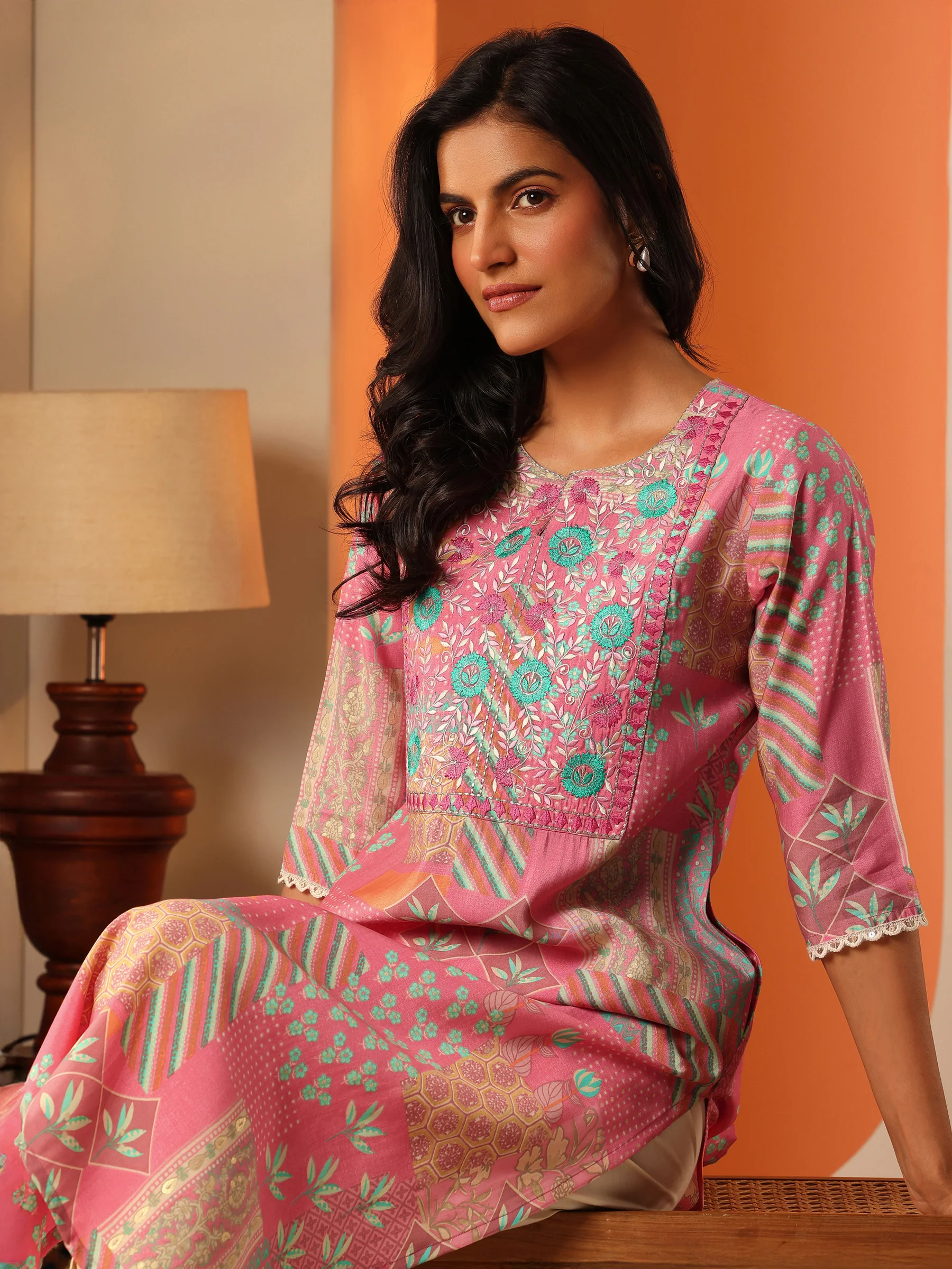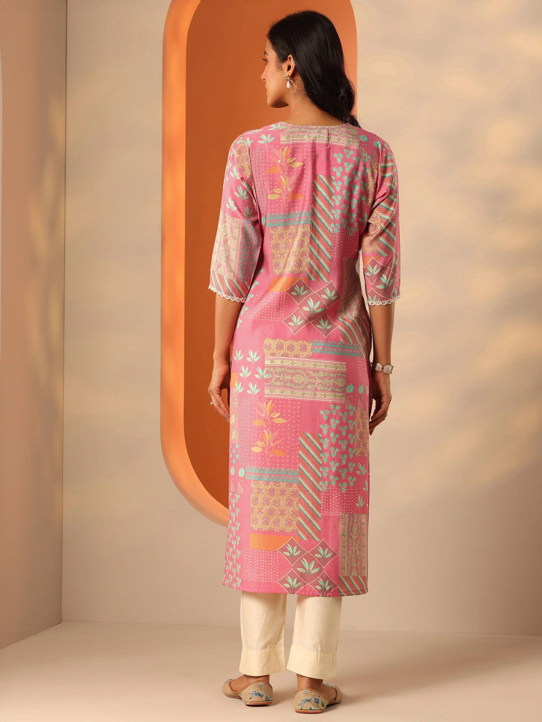 Home Kurta Set Pink Printed Silk Blend Straight Kurta