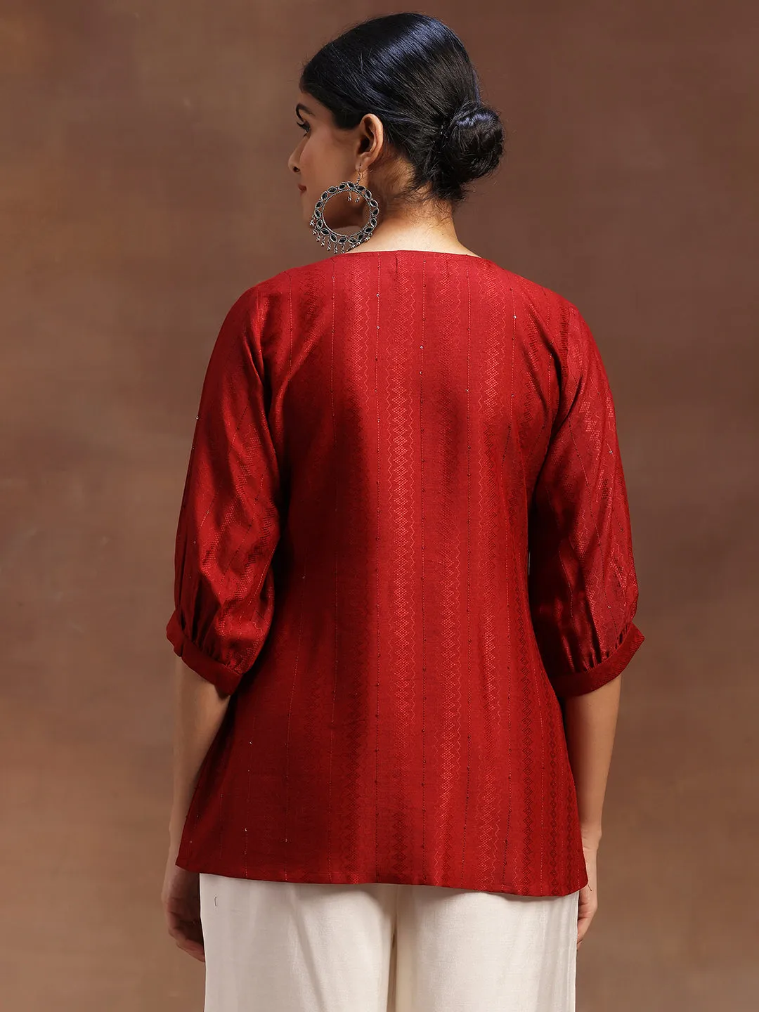 Red Woven Design Silk Blend A-Line Kurti