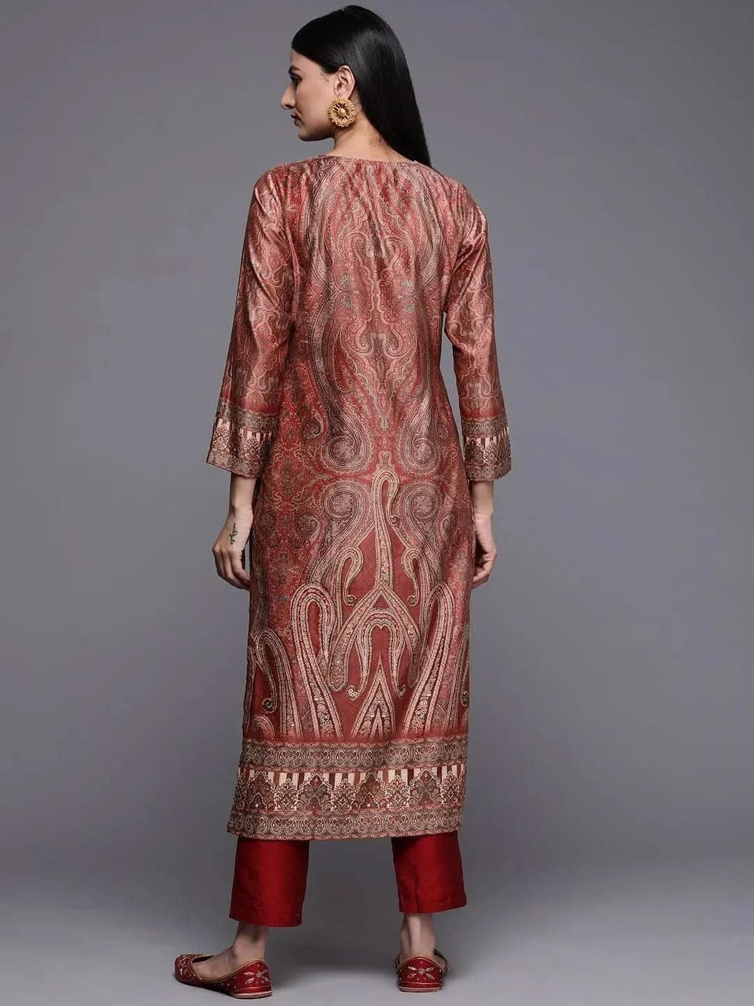 Rust Printed Velvet Straight Kurta