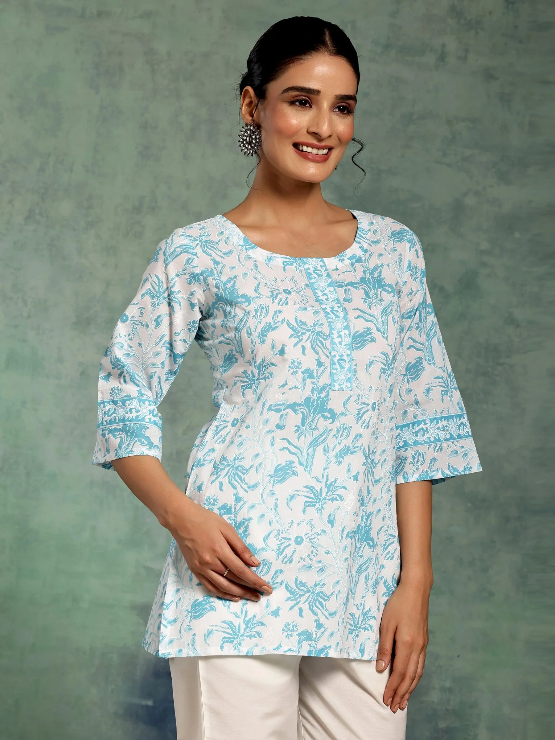 White Printed Cotton Straight Kurti
