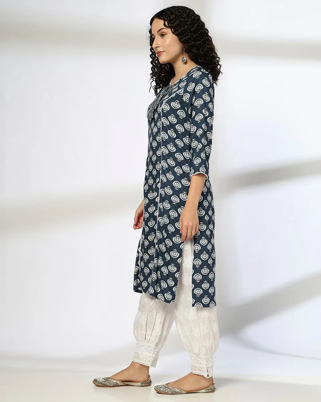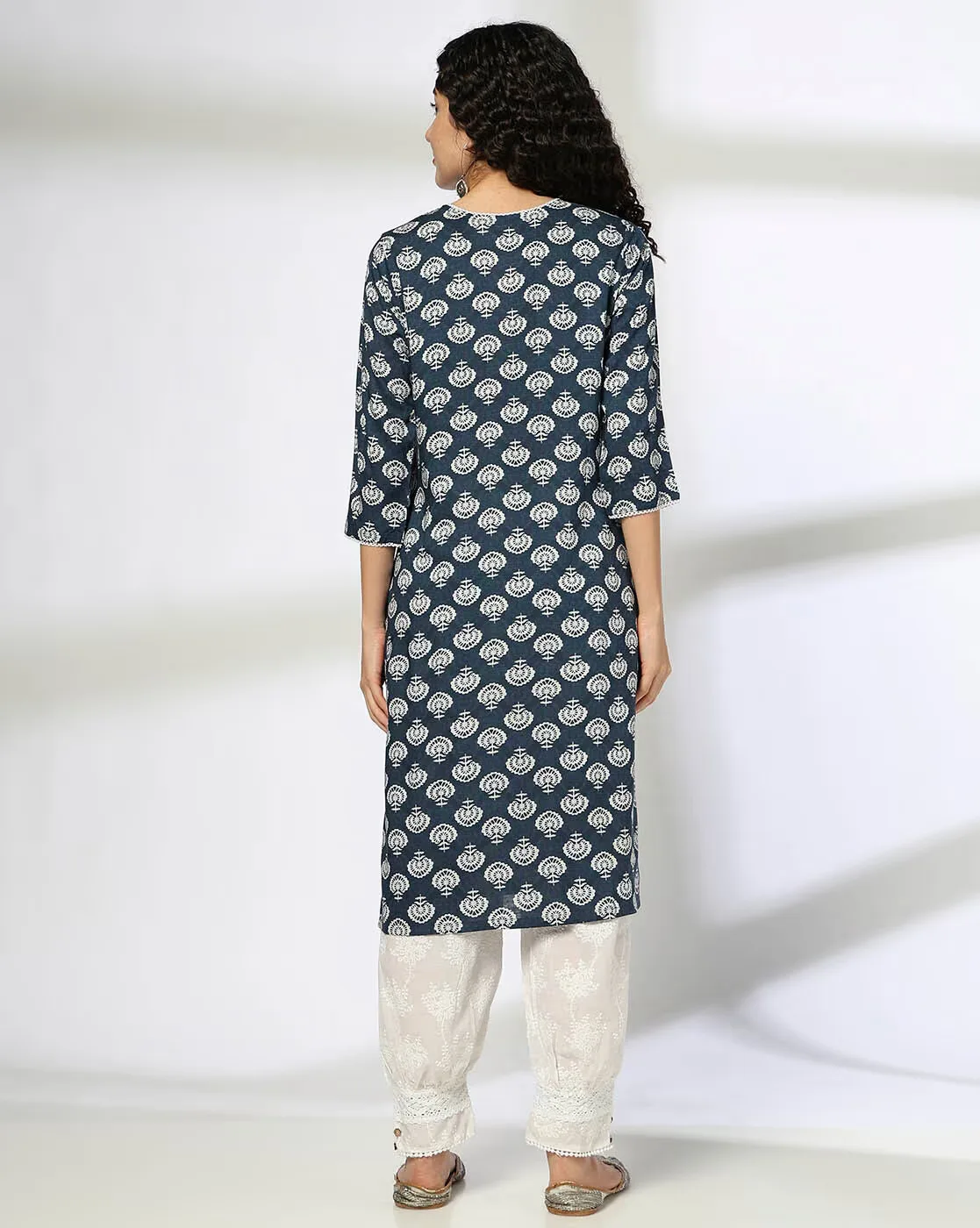 Women Floral Print Cotton Straight Kurta
