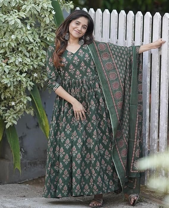 Women Printed Flared A-Line Kurta with Pant and Dupatta Suit Set | Kurta Set