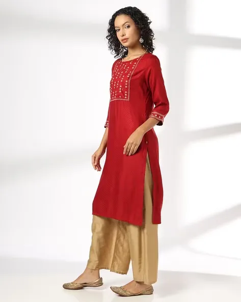 Home Falsh Sale Women Straight Kurta With Yoke Embroidery